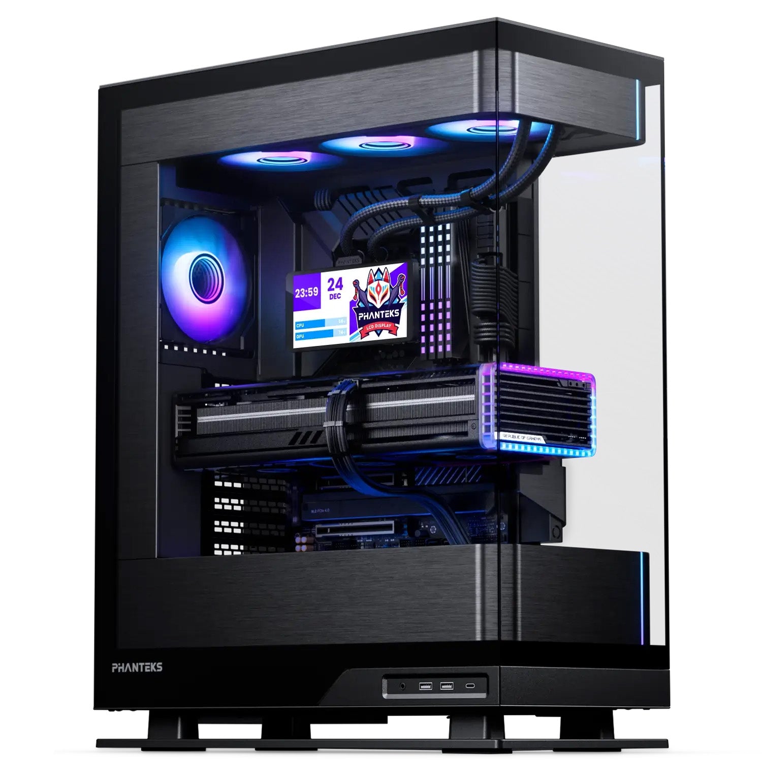 The Phanteks Glacier One 360M25-LCD brings customization to a whole new level with a crisp, super-large LCD-IPS display. Built on top of a powerful and reliable liquid CPU cooler and three powerful M25 Gen2 fans, it keeps the most powerful CPUs cool and stays whisper quiet.